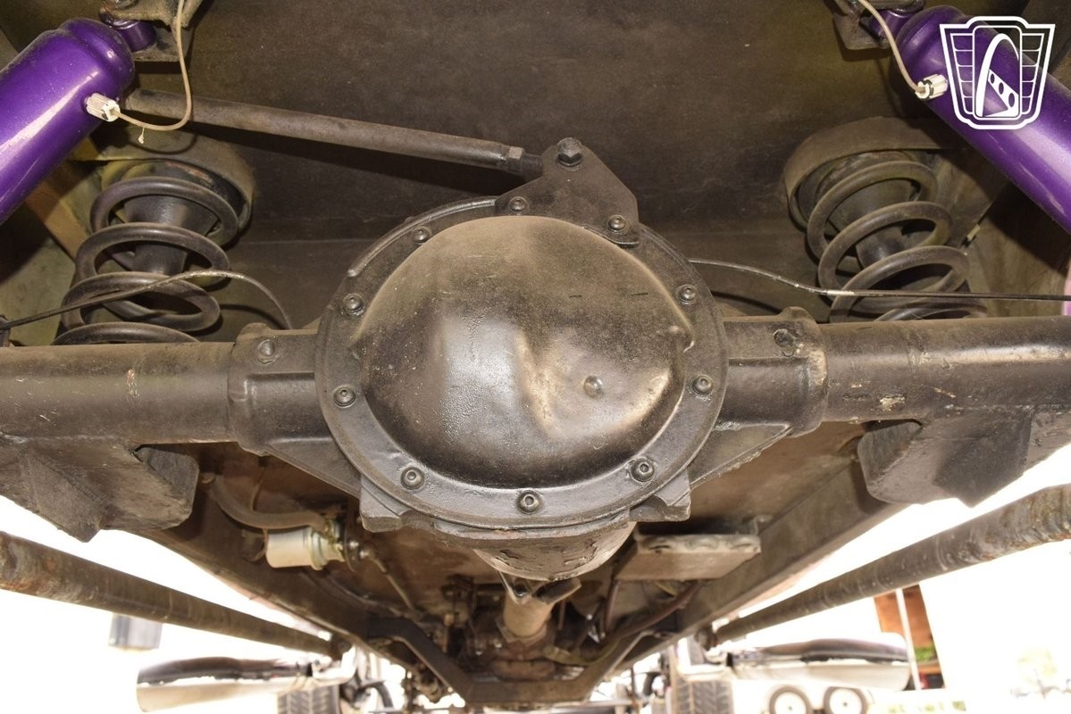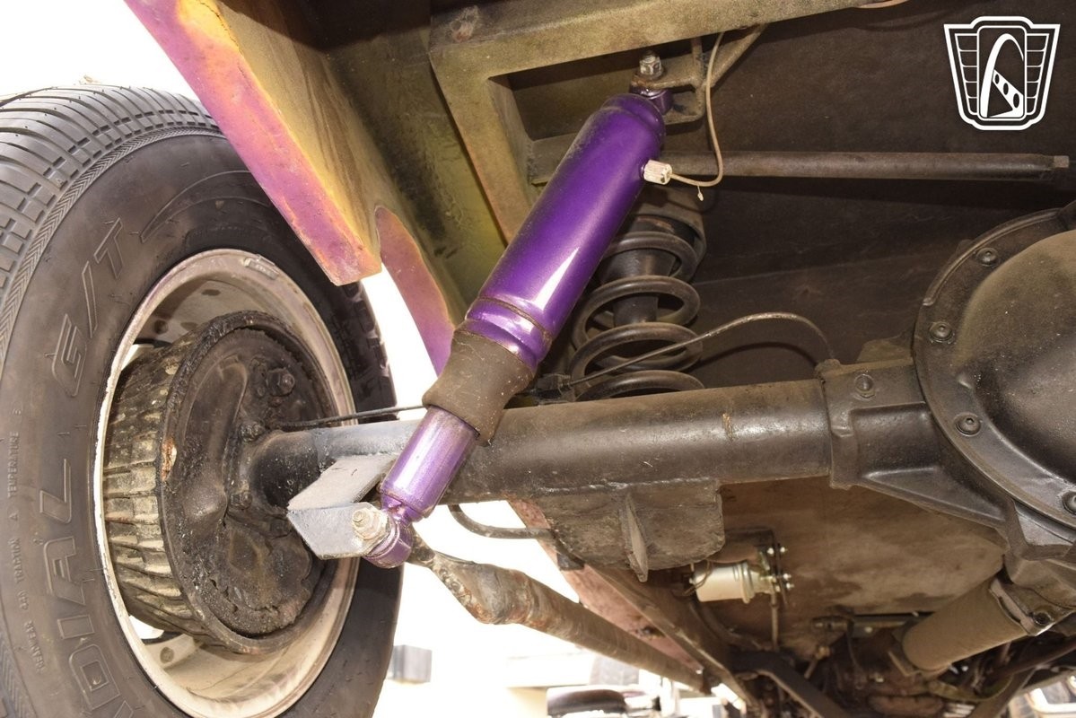 Inside, the bold purple vinyl interior continues the custom hot rod theme. It's designed for comfort but with a flair that matches the exterior's daring style. This isn't a truck meant to sit still-it's meant to be driven and enjoyed, with an interior that keeps the experience fun and unique every time you climb behind the wheel.