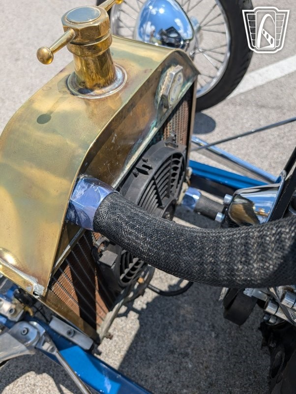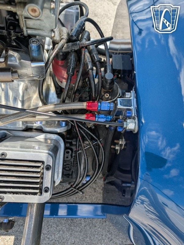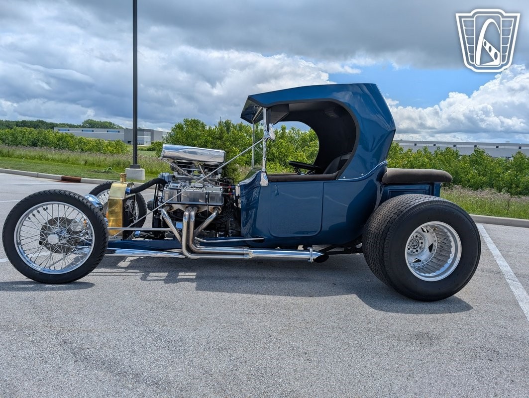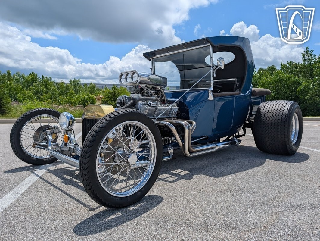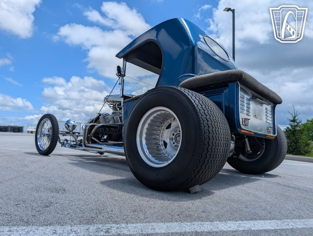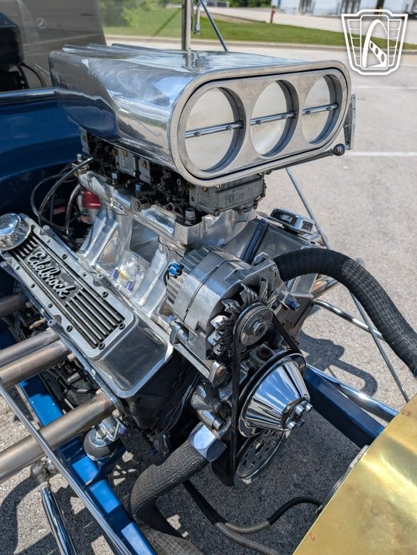 Gateway Classic Cars has the honor to present this early American automotive innovation: the 1923 Ford T-Bucket Hot Rod. This iconic vehicle is a testament to the timeless appeal of Hot Rod culture, featuring a striking metallic blue exterior that captures attention and admiration wherever it goes. This T-Bucket is powered by a 4 bolt 350ci V8 engine, camel hump heads, Dual Holley 4 barrel carbs mounted on a Hi Rise intake manifold, Mallory ignition, Edelbrock high rise chrome valve covers. paired with a 3-speed automatic transmission, offering a driving experience that is both powerful and smooth. all the chrome work up front offset with a period brass radiator for cooling.