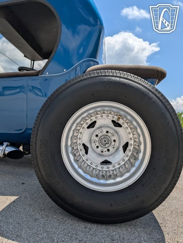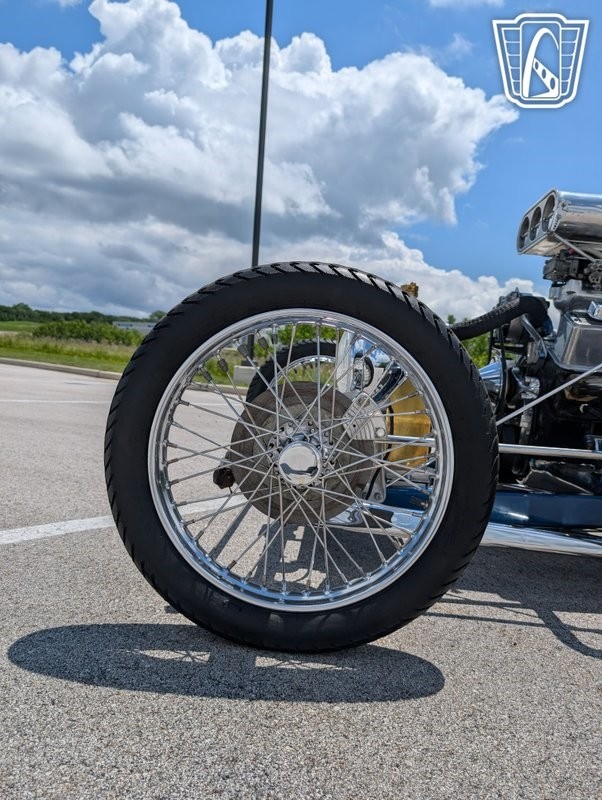 Mickey Thompson 18" rear rubber on 10 bolt chrome rims, a chrome front leaf spring axle with wire spoked front wheels and front disc brakes. All providing a unique flair, ensuring this T-Bucket stands out in any crowd.