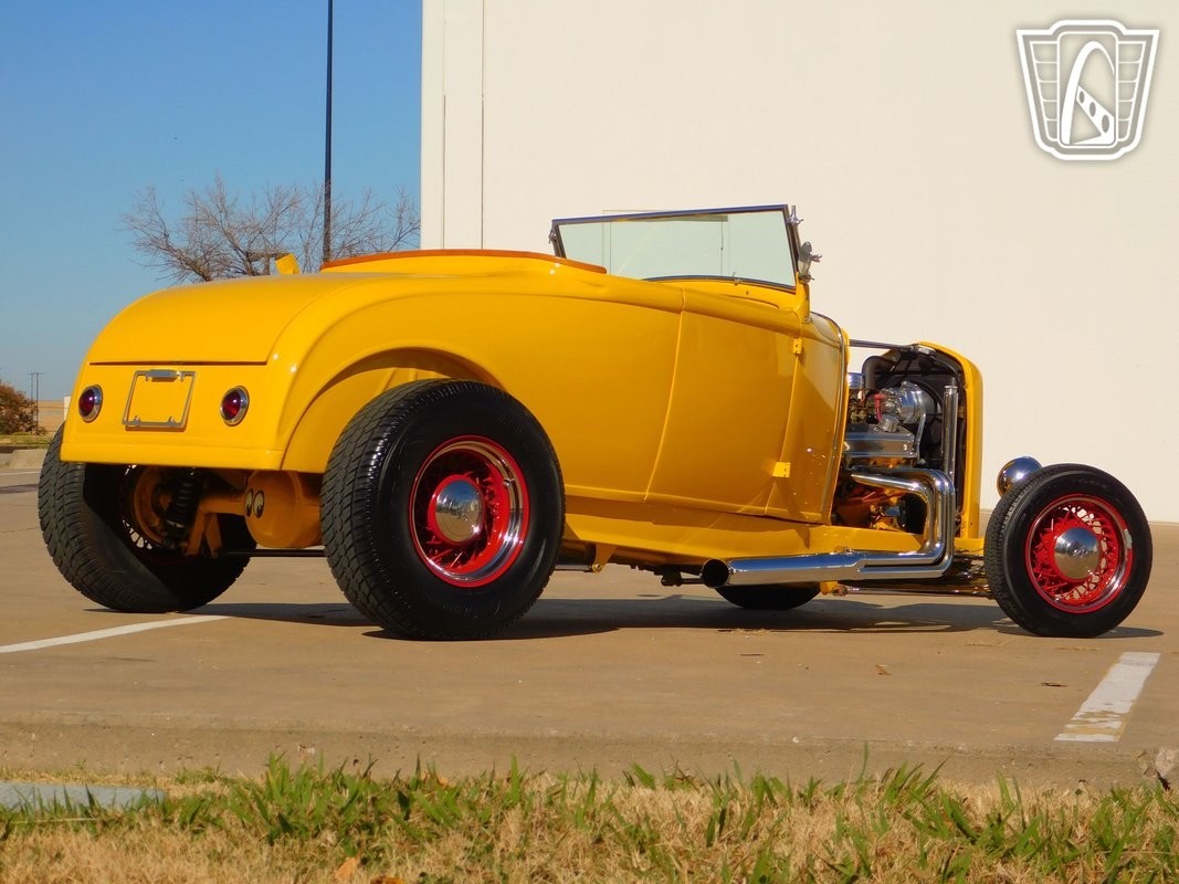 This 1932 Ford ROADSTER stands on a set of custom aluminum wheels that add a modern touch to its classic appearance. The custom wheels not only enhance the car's aesthetic appeal but also contribute to a smoother, more comfortable ride.
