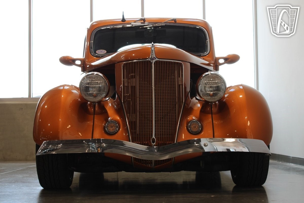 Gateway Classic Cars of Scottsdale is excited to digitally present this 1936 Ford 3 Window Coupe Custom, a stunning blend of classic design and modern convenience. This remarkable vehicle boasts an eye-catching copper orange candy pearl exterior that is sure to turn heads wherever it goes. The vibrant hue beautifully complements the sleek lines and timeless silhouette of this iconic coupe, making it a standout piece in any collection.