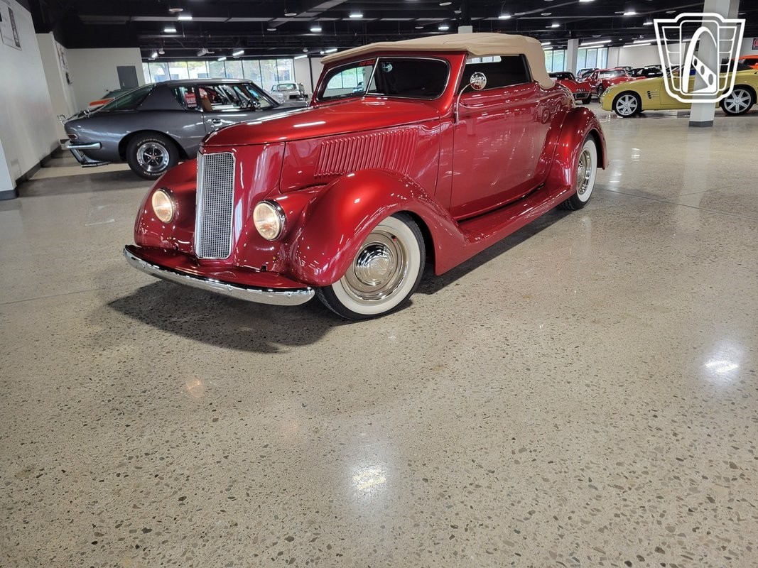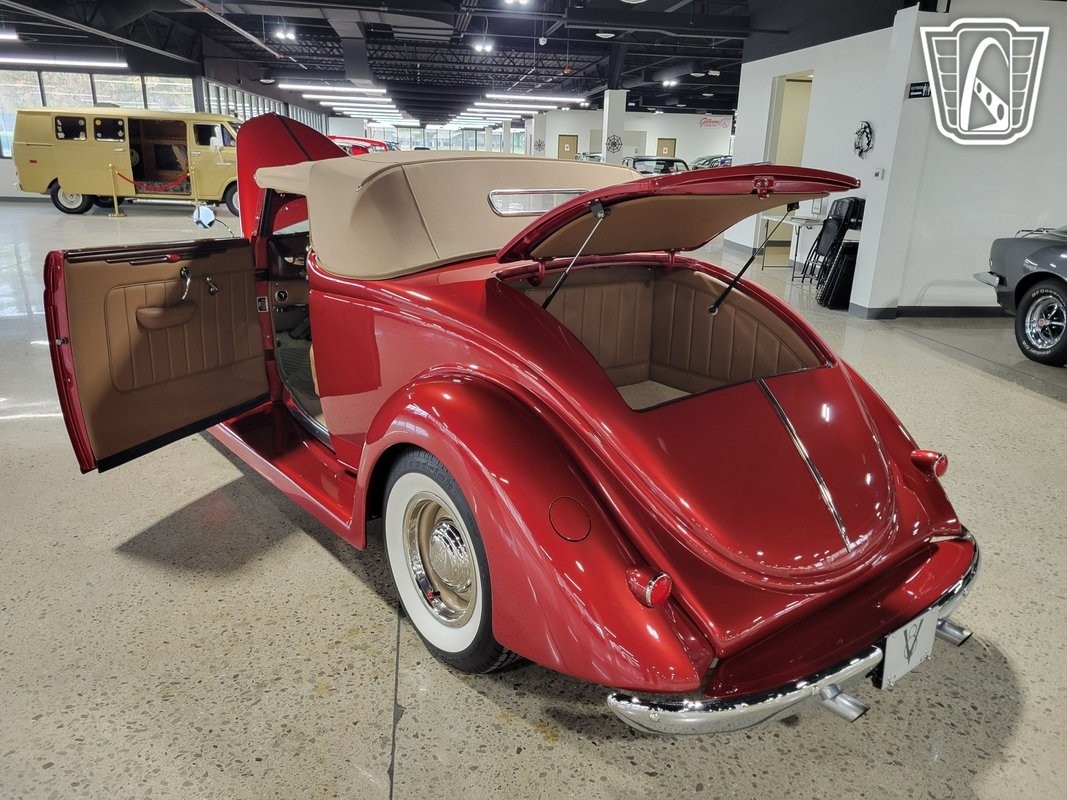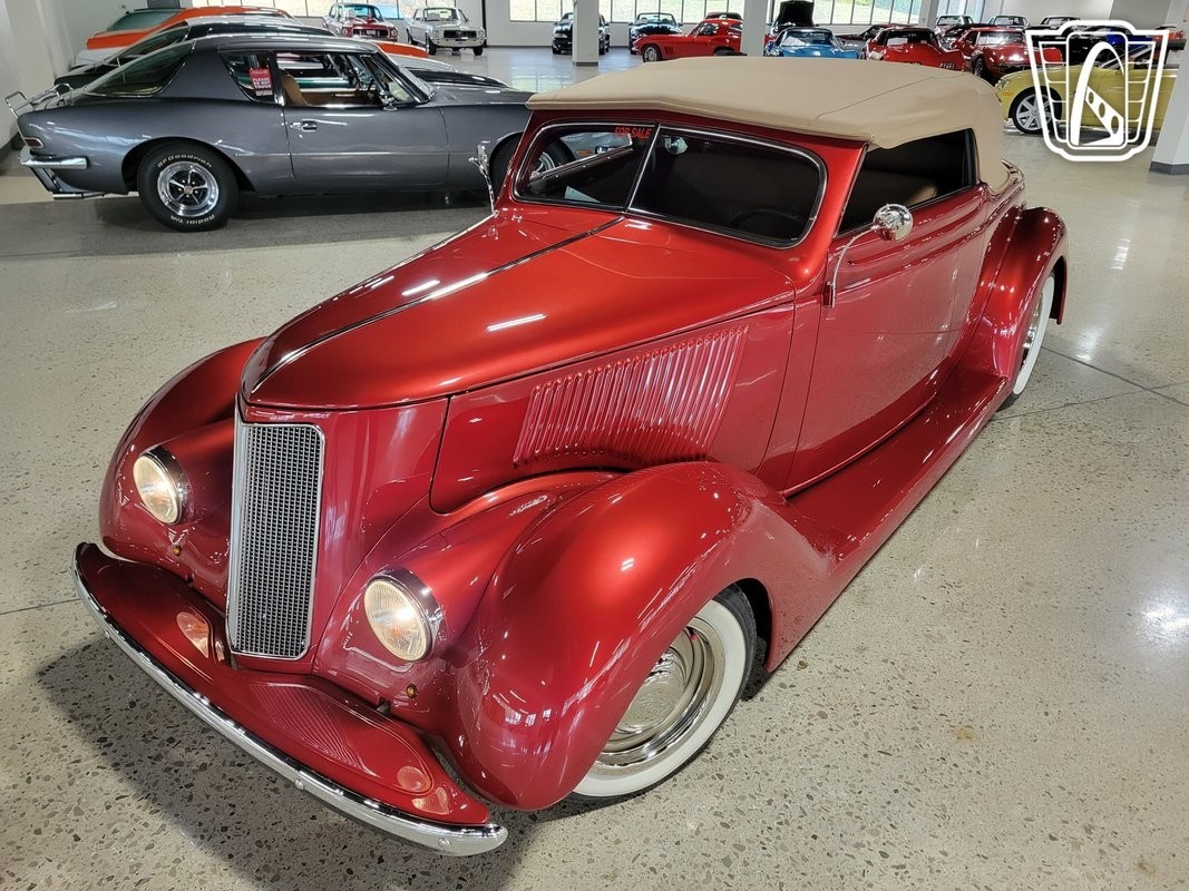 Gateway Classic Cars of Detroit is excited to present this fully custom 1936 Ford Cabriolet! Bathed in the captivating PPG Inferno Red, adorned with a luxurious tan leather interior, this Ford is a timeless beauty that effortlessly marries classic design with modern comforts. Under its elegant exterior lies a powerhouse, a 350CID Chevrolet V8 engine paired with a Turbo 350 transmission, promising a thrilling and reliable driving experience. Equipped with a keyless entry system, Tan Canvas convertible top, power steering, and Vintage Air A/C and heat, this Cabriolet combines the nostalgia of a bygone era with the convenience of contemporary technology. It's not merely a car; it's a rolling testament to the artistry of automotive craftsmanship!