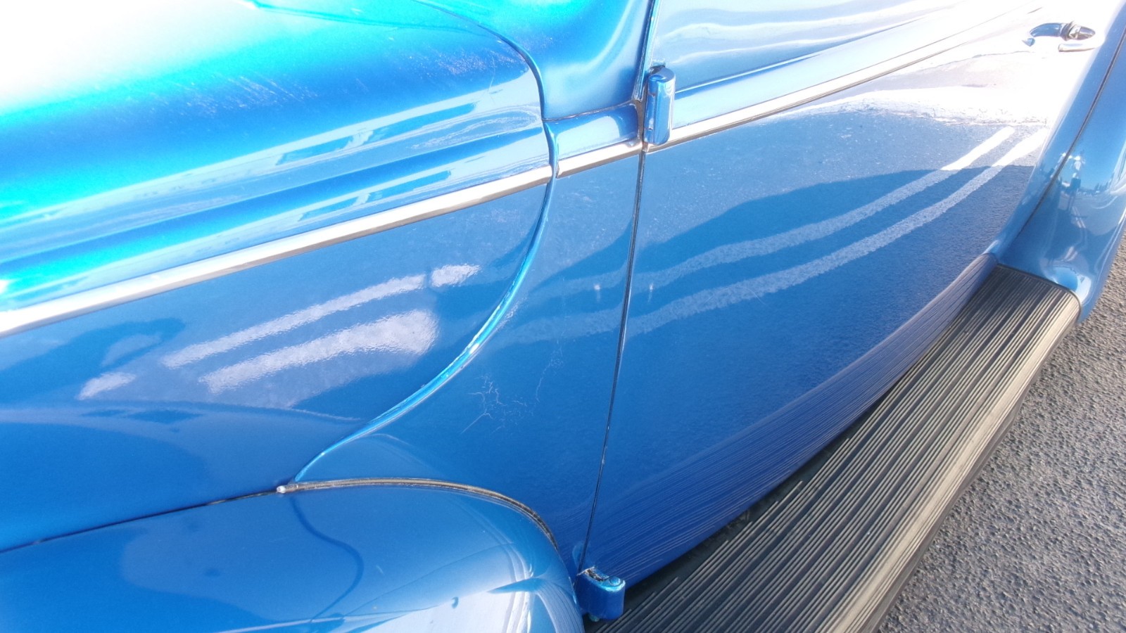 Nice Clean, Rust free-- 14 year old build. Base coat, Clear coat Indigo Metallic Blue Paint shows and shines well. Few flaws