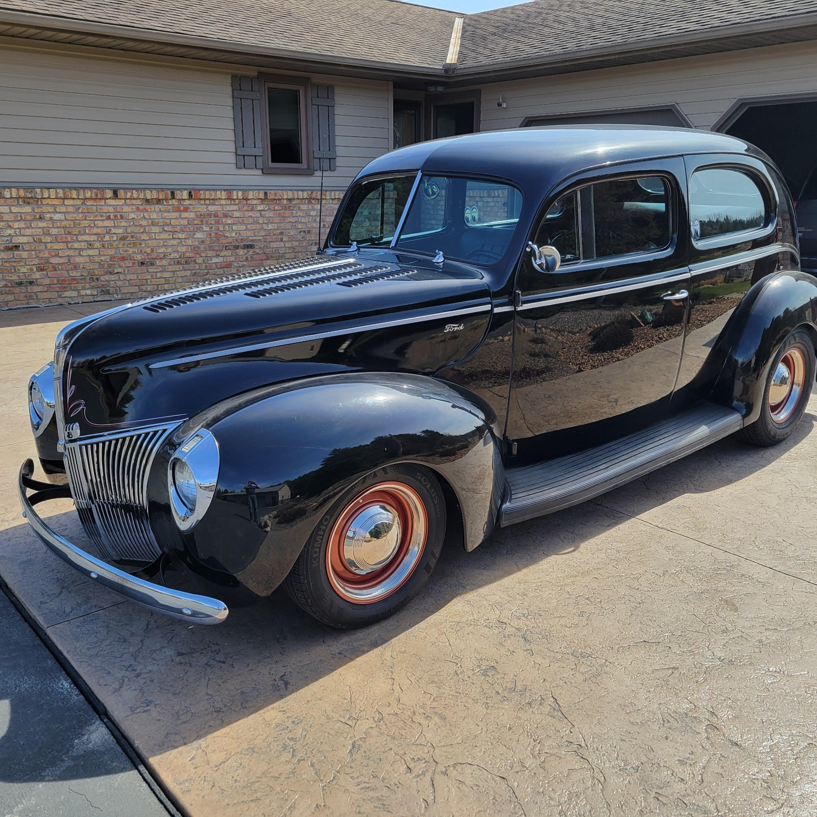 1940 ford standard 2r. 350/350. Dropped axle, 9 in rear parallel leafs. PS PB. Black& paint & Black vinyl interior in good shape. 15 in tires & wheels. Good chrome & stainless. Louvered hood & electric fan. Good glass & pinstriped. Sits right. 507 456 1841.