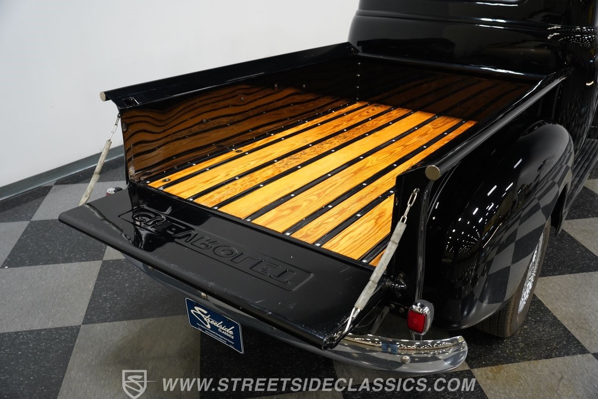 Under the hood, you will find a reliable 235 cubic inch Inline 6 engine, paired with a classic 3-speed manual transmission. The engine bay is clean and straightforward, reflecting the mechanical purity of its era. The drivetrain features a 12-volt electrical system upgrade with an alternator for added reliability. Manual steering and brakes provide a genuine vintage driving experience, while the factory-style suspension and drum brakes contribute to the truck's authentic feel on the road.