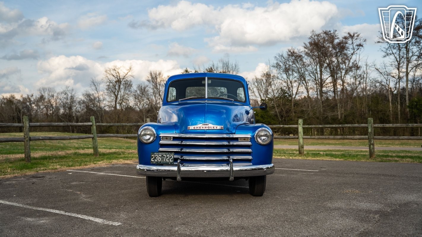 Gateway classic cars of Nashville is proud to digitally present to you this 1952 Chevrolet 3100 5 Window pickup. Dressed in a striking blue exterior, this truck captures the essence of vintage style and timeless design. As you approach, the gleaming hub caps and smooth radial tires invite you to take a closer look, hinting at the simple pleasures of a bygone era.