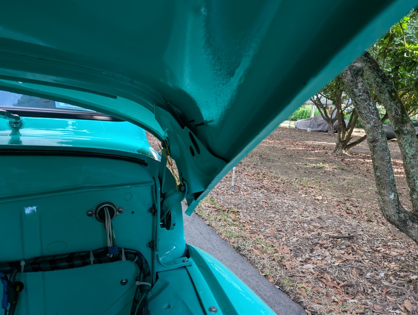 - A partial list of notable currently installed equipment reported by the seller includes a 12-volt electrical system conversion, updated wiring harnesses, HID headlights, stained wood flooring in the bed, and Autometer gauges.