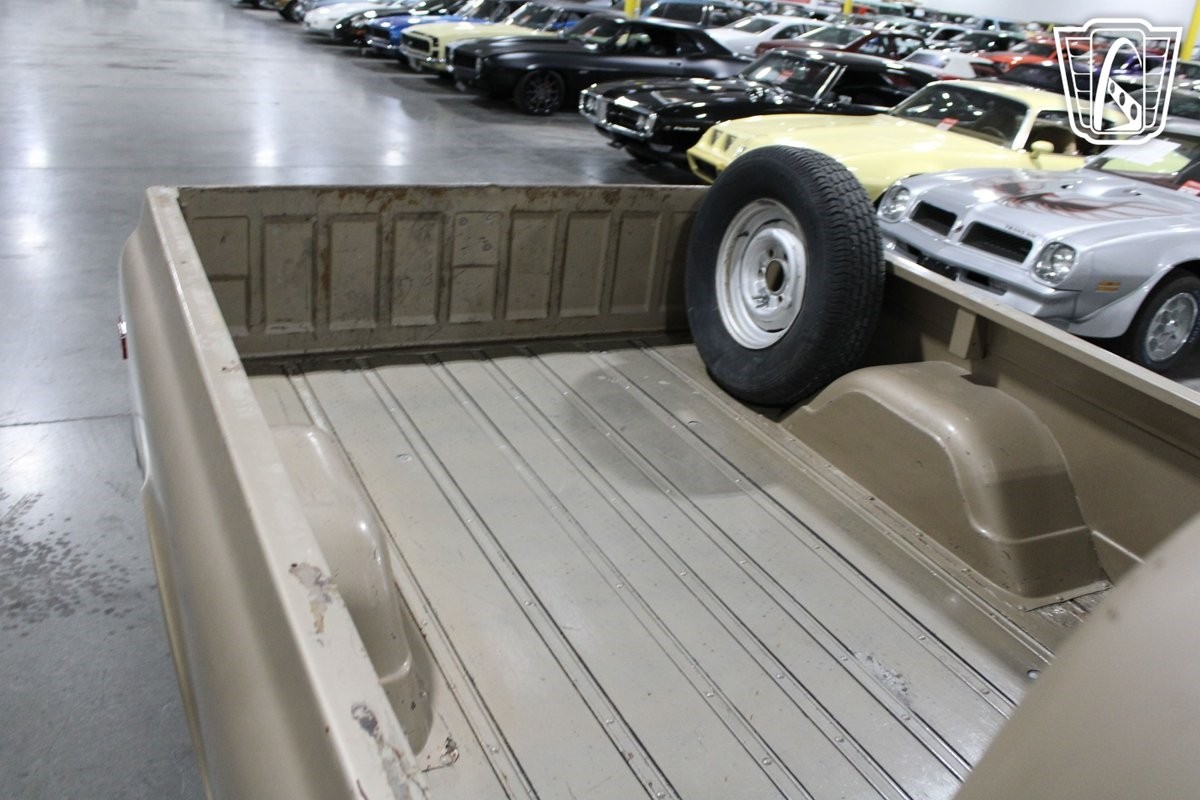 Step inside, and you'll be greeted by a tan cloth interior that complements the exterior's earthy tones. The cabin is designed with simplicity and functionality in mind, providing a comfortable driving experience. The cloth seats offer a touch of warmth and comfort, making every drive a pleasant one. This C10 is equipped with seatbelts, ensuring a basic level of safety for you and your passengers.