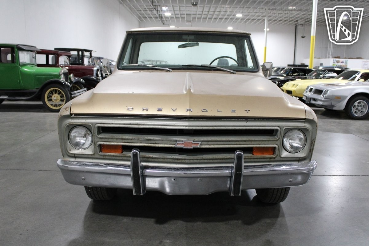 The exterior is adorned with classic hub caps, adding a touch of vintage charm to the overall look of the truck. These hub caps not only enhance the aesthetic appeal but also serve as a nod to the timeless design elements of the era. Whether you're a collector of classic vehicles or simply someone who appreciates the beauty of a well-crafted truck, this 1968 Chevrolet C/K C10 is sure to capture your attention and admiration.