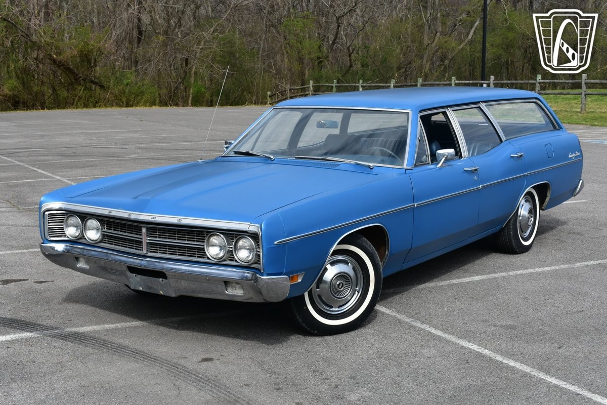 Introducing a classic piece of American automotive history, the 1970 Ford Country Sedan, a timeless station wagon that embodies the spirit of the open road. This particular model boasts a striking blue exterior that complements its matching blue interior, creating a cohesive and stylish look that is sure to turn heads wherever it goes. Under the hood, you'll find the robust 351 Cleveland V8 engine, paired with an automatic transmission, offering a smooth and powerful driving experience that is both reliable and enjoyable.