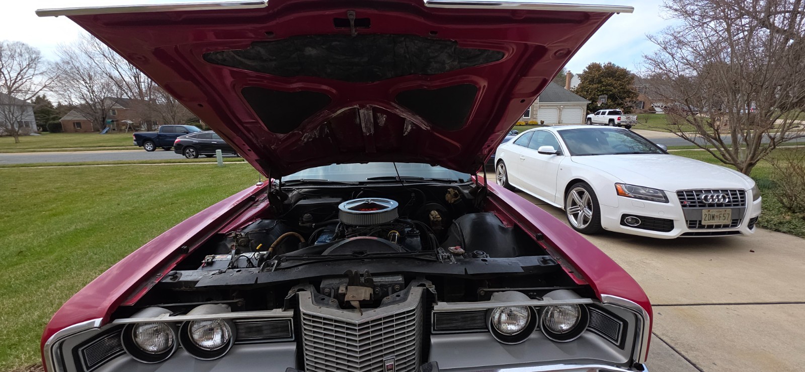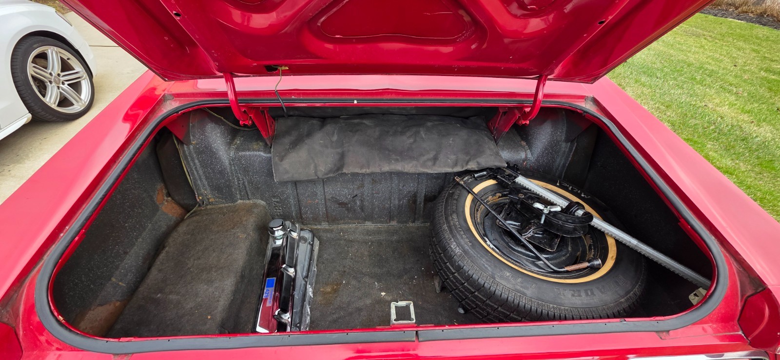 original air cleaner, Holley carburetor, jack, chrome valve covers, weather