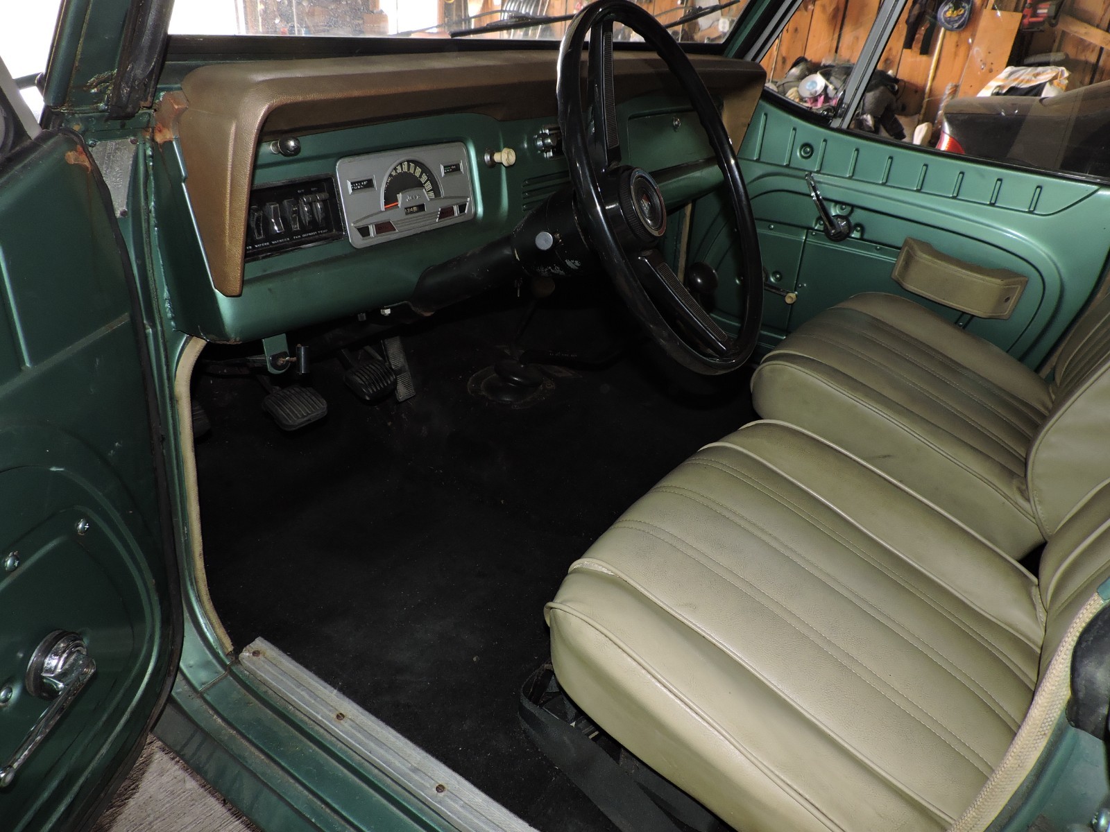 The Interior of the vehicle is excellent including the Dashboard, Seats, Steel Removable Roof including Glass. Entire Powertrain is excellent as well as (2) Speed Transfer Cases, Transmission Clutch Assy. Front & Rear Differentials and Warner Front Locking Hubs. Vehicle was never used Off Road in spite of its capability. Electrical System is flawless with exception of O.E.M. Radio Light, and Fuel Gauge Sending Unit. A New One is included included with the sale as well as the Original Owners Manual.
