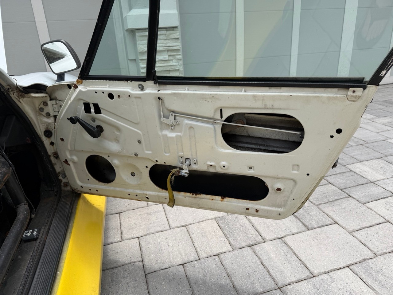Tub looks to be solid, not sure what brakes or wheels are on the car, both are upgraded and not 73 911S equipment. Doors still have the windows and roll
