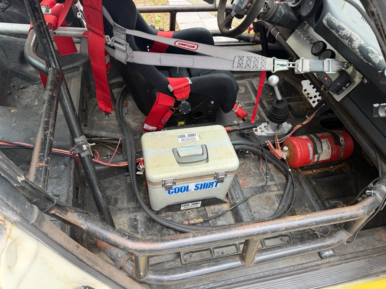 The car has been stored in an enclosed race trailer for decades and out of the weather. The race safety equipment is expired and should be replaced if you plan to return the car to the track.