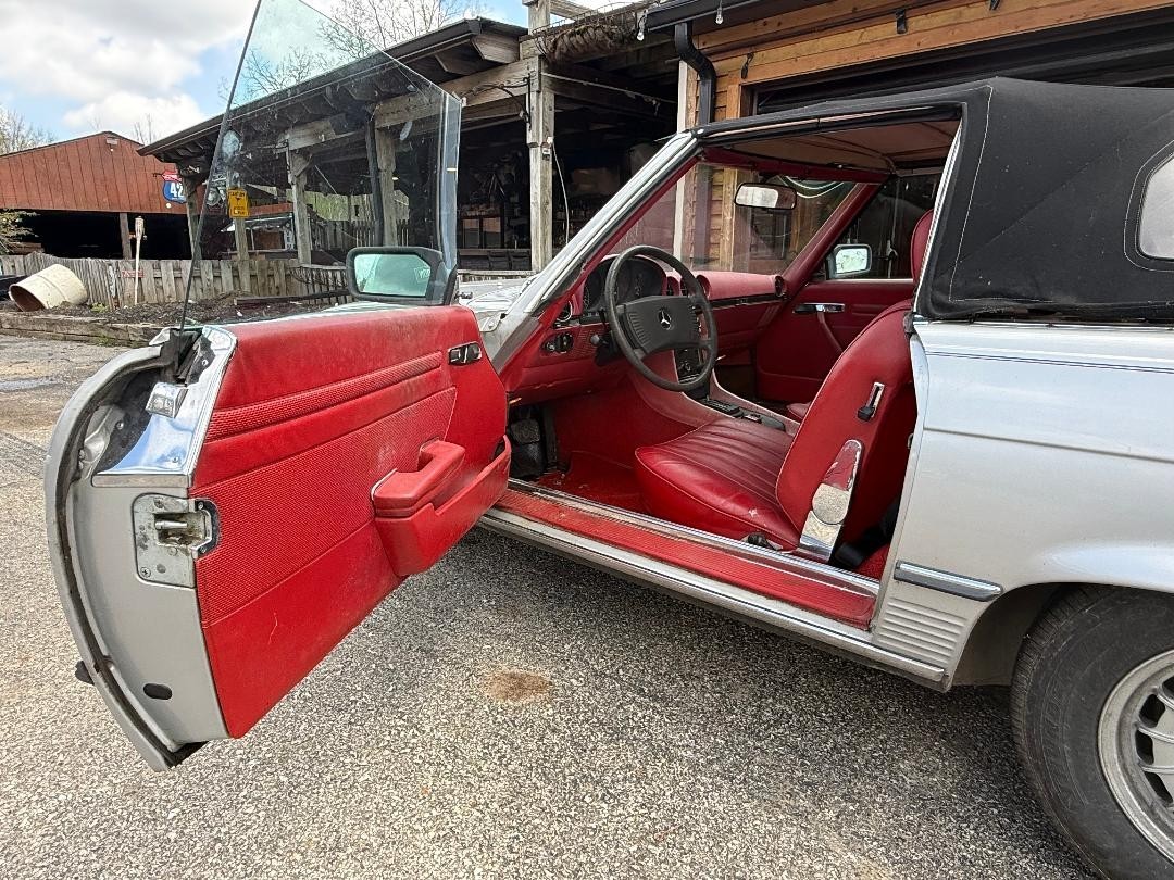 The 1978 450 SL is a convertible car with a red interior and silver exterior. It has 2 seats and 2 doors, making it a classic and stylish vehicle for its year. With a mileage of 69,951, this model is sure to be a unique addition to any car collection, offering a combination of vintage charm and modern functionality. This car is owned by an 82 year old women that has babied it and only driven it a couple time a year for the last ten years. everything works as it should fresh oil change and brand new tires all around. the car has miner rust issues for a 48 year old classic car. the car has been parked in the garage under cover its entire life. the car is being sold as is were is.