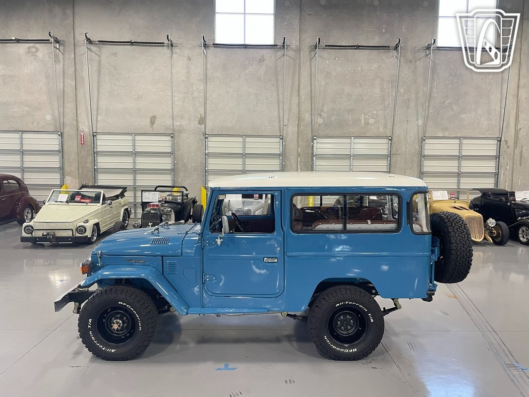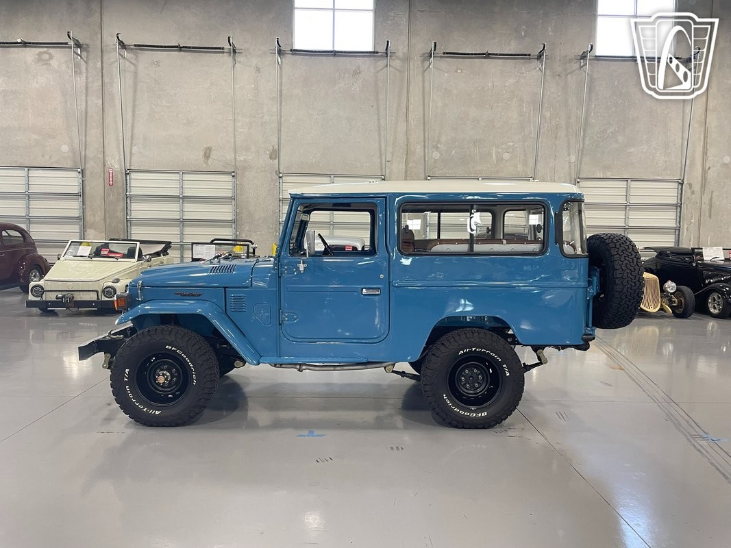 Gateway Classic Cars of San Antonio/Austin is proud to present this beautiful 1978 Second Series FJ43 finished in Cadet Blue. Second Series means the fuel tank is under the body and not under the seat. This iconic vehicle is powered by a rebuilt 2F I6 engine, paired seamlessly with a 4-speed manual transmission, delivering a driving experience that is both robust and engaging. The FJ43 is a testament to Toyota's engineering prowess, offering both durability and performance that enthusiasts have cherished for decades. Step inside to find a well-appointed interior featuring new, comfortable brown vinyl seats that complement the vehicle's vintage aesthetic. Modern conveniences are not overlooked on this classic ride. Enjoy the comfort of cold blowing air conditioning, ensuring that every journey is pleasant regardless of the weather. For your listening pleasure, this FJ43 is equipped with an AM/FM radio and a CD player with 6 speakers throughout, allowing you to enjoy your favorite tunes as you traverse both urban landscapes and rugged terrains. Fitted with new power front disc brakes ensure you have the stopping power needed for any adventure. Whether you're a collector, an off-road enthusiast, or someone looking for a unique and capable vehicle, this 1978 Toyota FJ43 offers a blend of classic style, modern features, and the legendary reliability that Toyota is known for.