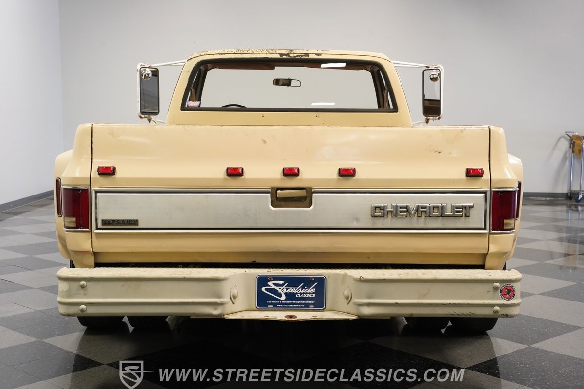 Under the hood, this Chevrolet C30 is powered by a 350 cubic inch TBI V8 engine paired with a smooth-shifting 3-speed automatic TH400 transmission. The truck starts, runs, and cruises effortlessly, backed by power front disc brakes and power steering for ease of handling. The factory-style suspension has been slightly lowered and equipped with street performance shocks, enhancing the ride without sacrificing its classic feel. A sturdy 14-bolt rear end and dual-to-single exhaust with a replacement-style muffler round out the mechanical package, making this truck as capable as it is iconic.