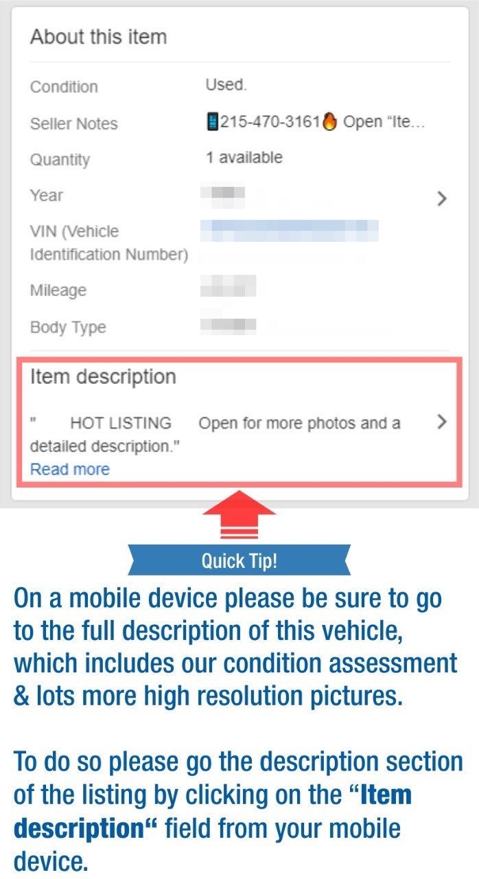 Foreword: Please realize that while we will do our very best to assure you get a vehicle that matches what you see in the pictures and read in the description, due to the nature of our business its impossible to never miss an imperfection or have perfect knowledge of every car. We will try our best to accurately tell you as much info as we have about the vehicle but humans make mistakes, so please bear in mind that it is up to you, the buyer, to make sure you are ok with the condition of the vehicle prior to purchasing it. All vehicles are sold AS-IS without warranties of any kind.