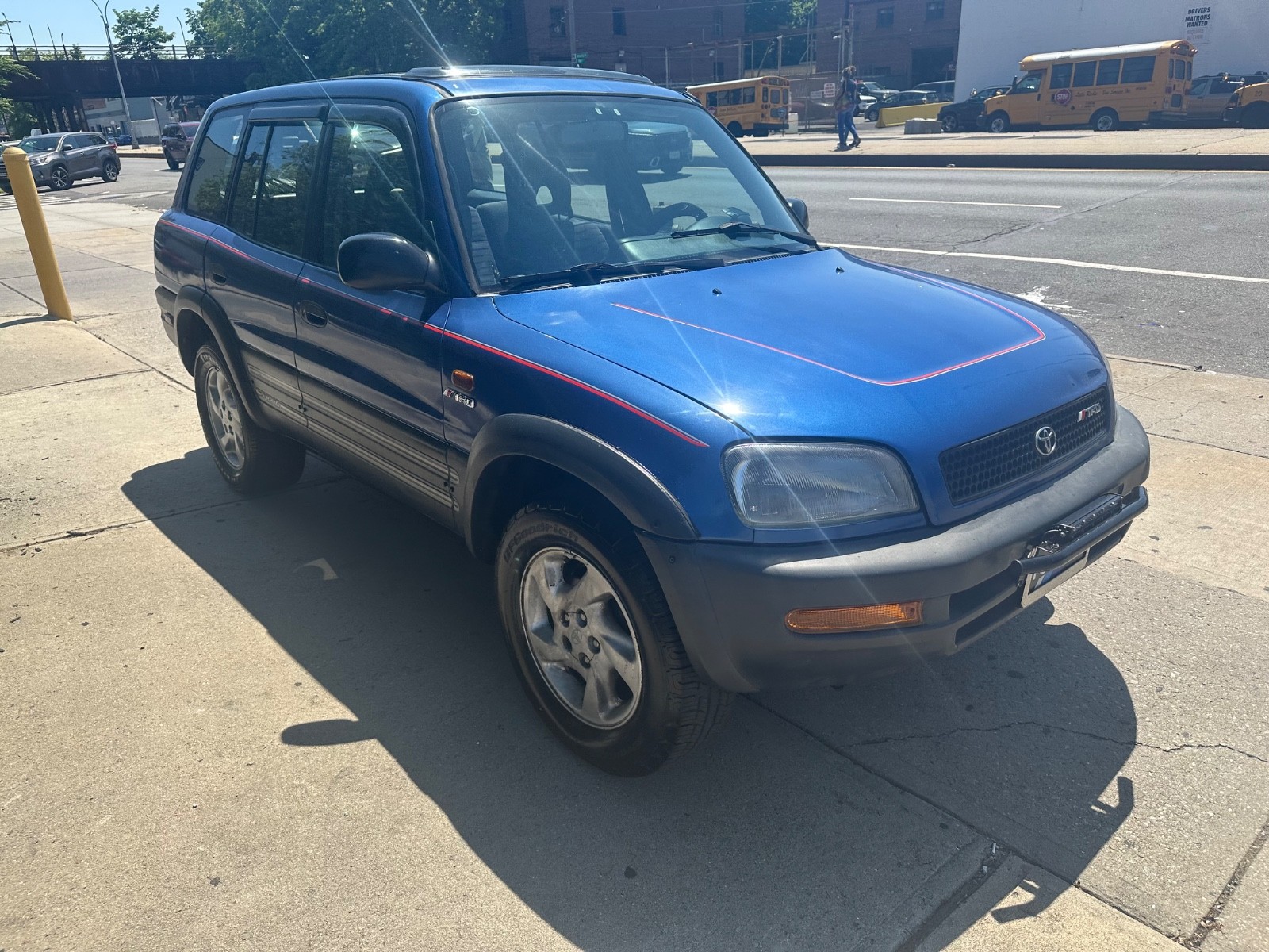 for sale is a car that was traded in to a local new car dealership.rare early 1 gen rav4 w all wheel drive and full factory fairing moldings !!! i have been driving this car around for the last 2 years.the car currently has no leaks no smoke and no check engine lights on. the car has no unusual or problematic sounds. this vehicle starts right up the engine runs smooth and quiet, the transmission shifts well, the front end tracks straight and the exhaust is quiet. the brakes and tires still have plenty of life on them. the electronics, windows heat and ac are all in working order. the body and paint are in excellent condition but the car will have some minor dents dings chips or scratches but far less than you would expect of a vehicle this age.i had a minor accident in july 2024 the passenger fender and headlight was replaced, the front bumper was fixed, no suspension damage. this car does have a clean title.the interior shows only minor wear with no major rips or stains, and the previous owner was a non smoker. please review photos as what you see is what you get and continue to read and understand all of the terms and conditions of sale.i will keep driving this car until it is sold so the mileage may be higher at the point of sale