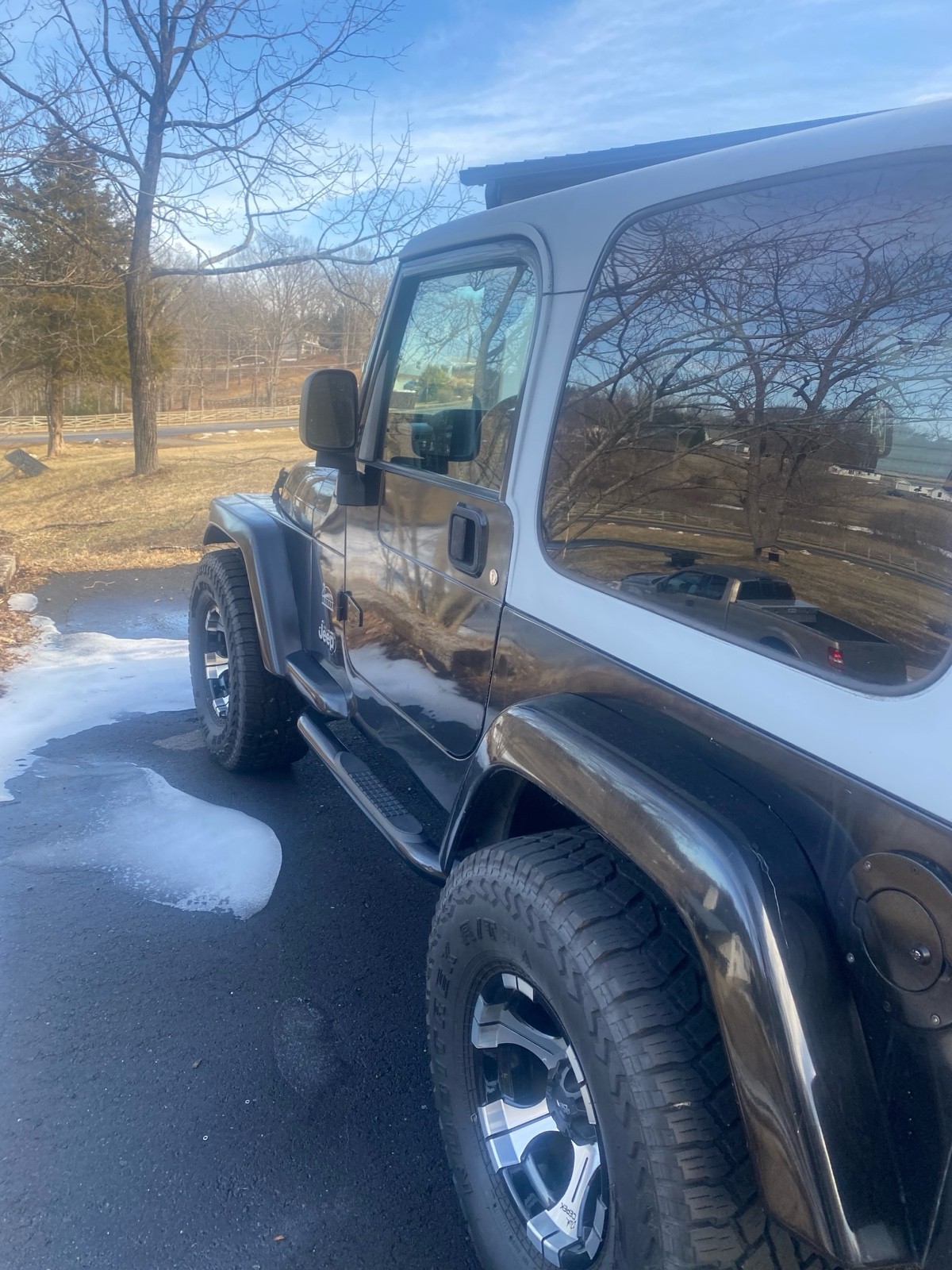 2003 Jeep Wrangler with only 118,000 original miles … Zero rust … 4.0 engine with 5 speed manual transmission… New tires and wheels … New shocks front and back … Paints is a little faded on hood … New front and rear bumper with LED light that haven’t been hooked up … Has a new track bar that I installed… Has a little vibration at around 45 then clears up over that … The Jeep is still financed so I would have to get the title once’s it paid in full