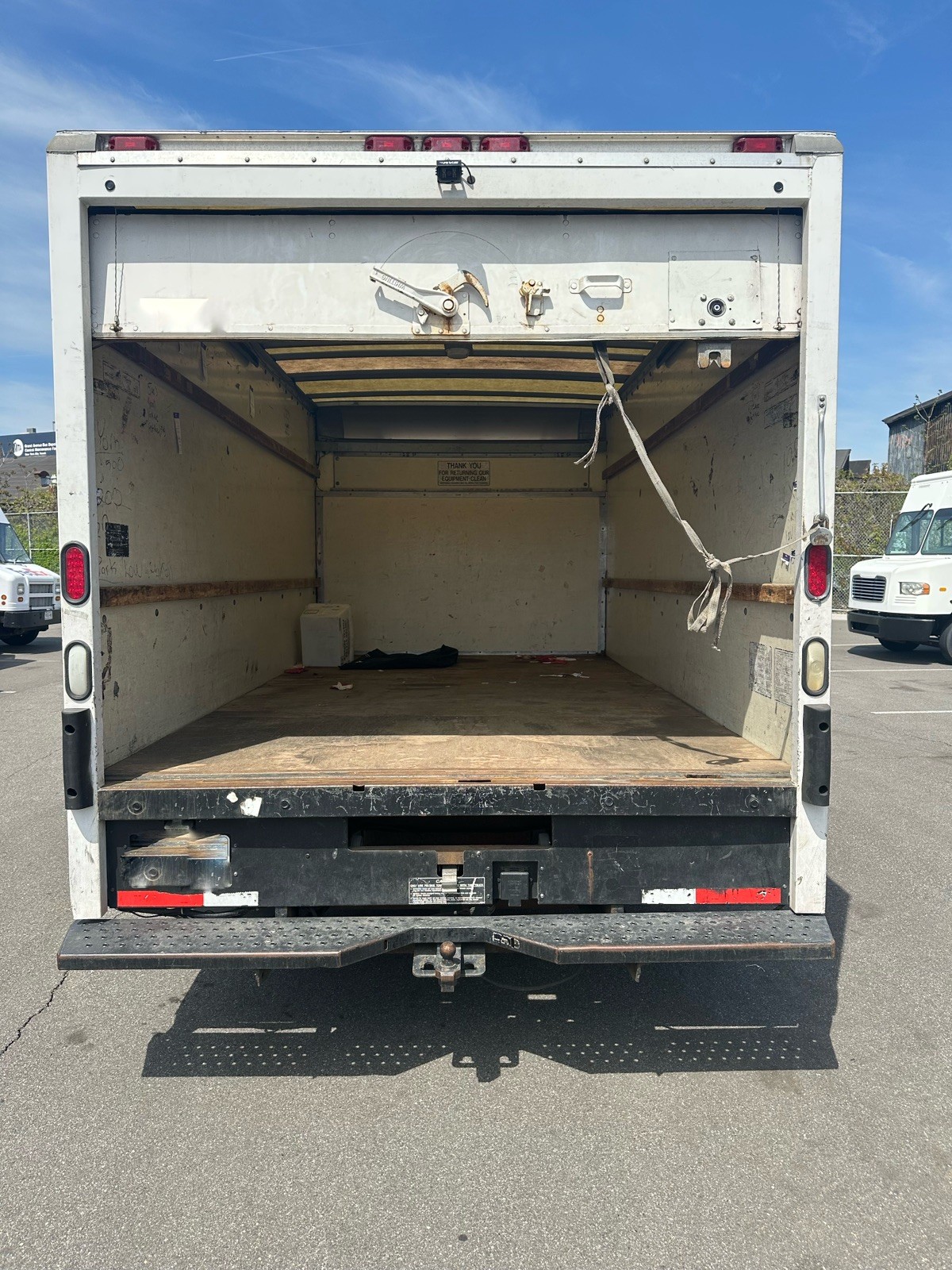 The product is a 2004 Ford E350 Super Duty Delivery Truck in White with 106,100 miles. This cutaway van has an automatic transmission, 8 cylinders engine with 5.4L gas V8 engine size. It has 2 seats, 2 doors, and is rear-wheel drive. This vehicle has a clean title and has not been previously registered overseas. It is a reliable and well-maintained truck suitable for various delivery or transportation needs.