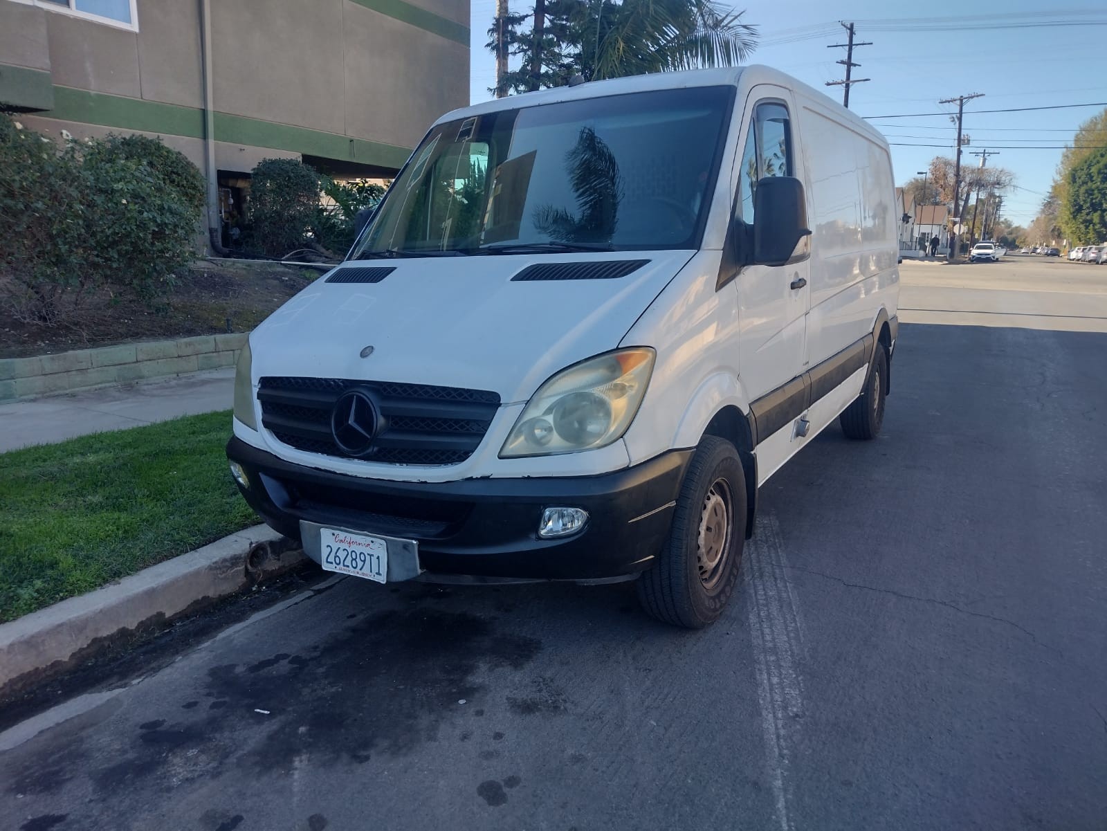 The 2010 Mercedes-Benz Sprinter 2500 is a minivan with a sleek black interior and a white exterior.