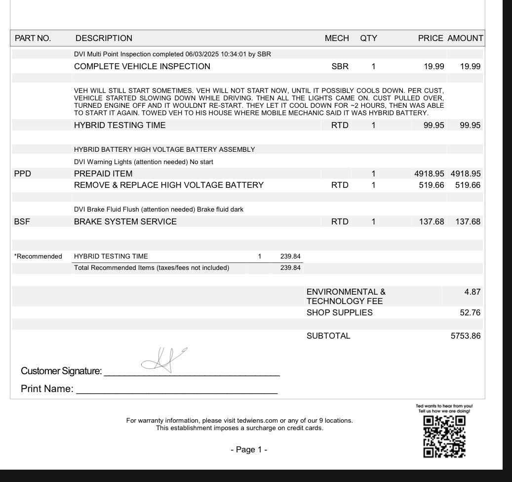 • Hybrid battery recently replaced