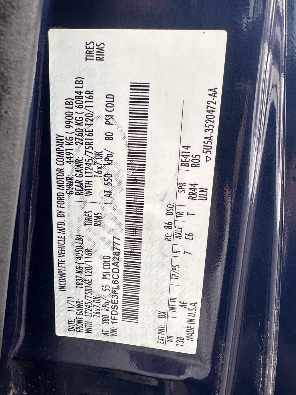 2012 Ford E-350 Super Duty E 350 SD 2dr 138 in. WB DRW Cutaway Chassis
