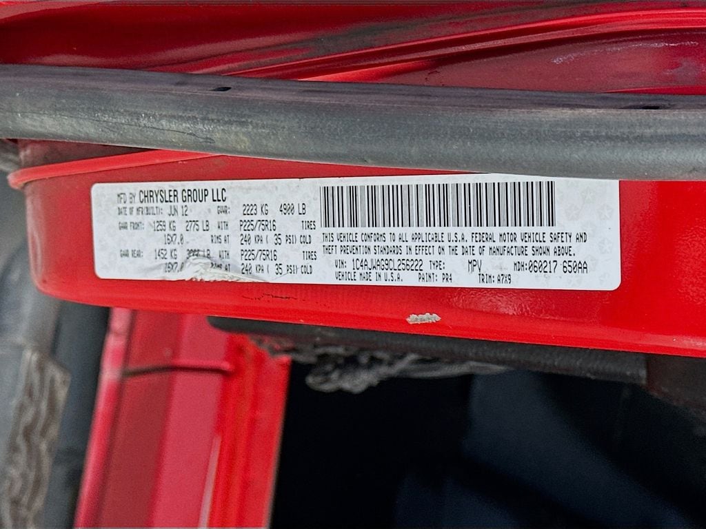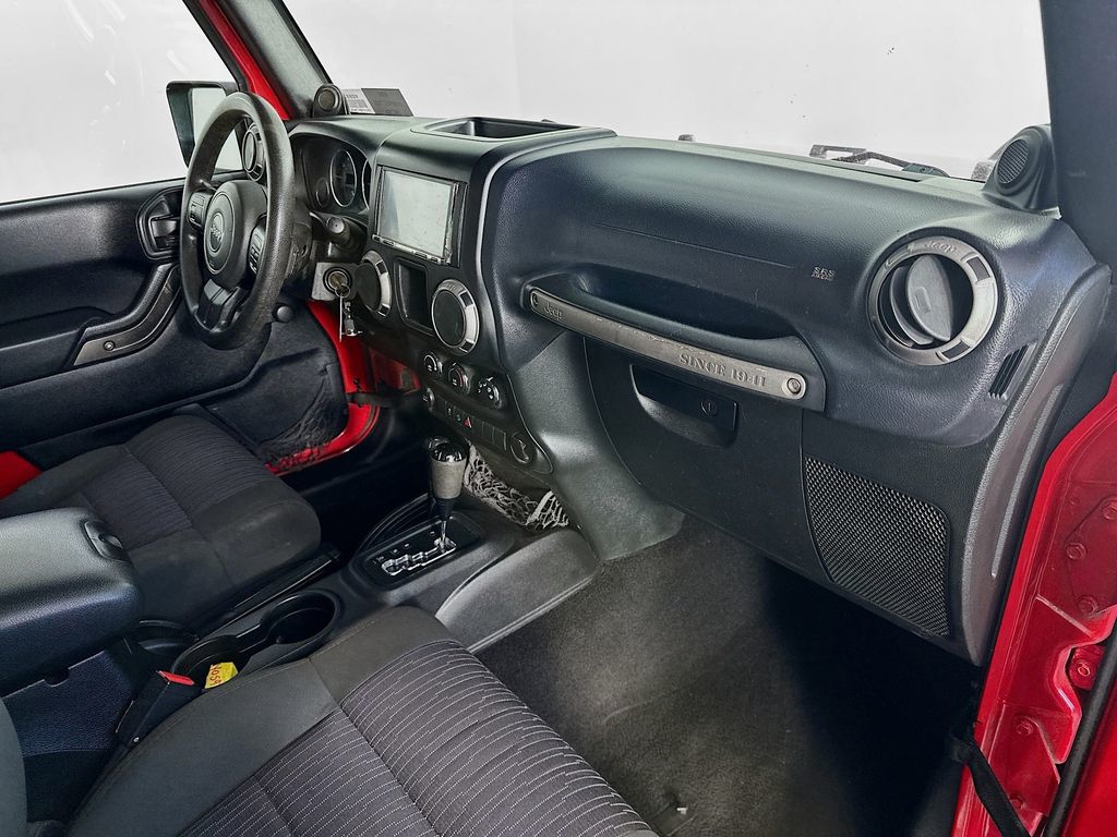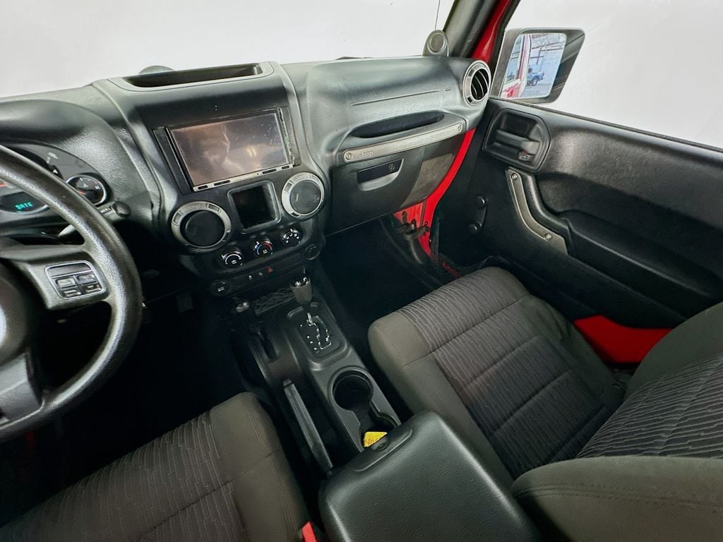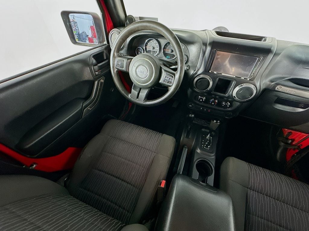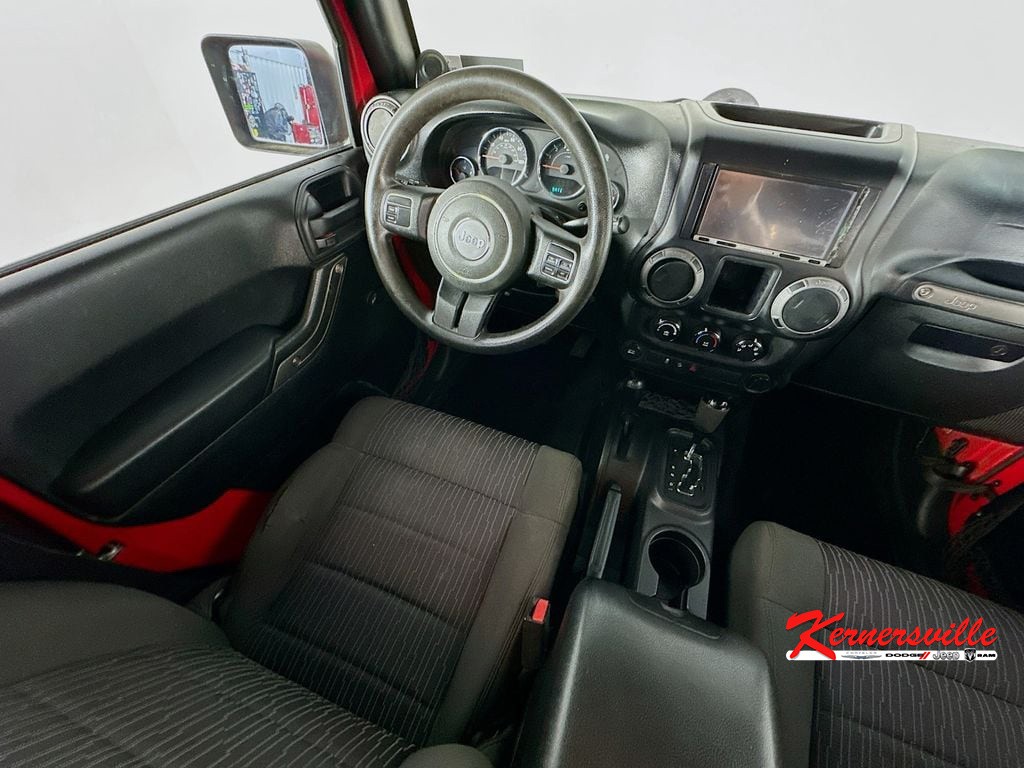 When calling or emailing, please reference stock number Y0593.MORE ABOUT THIS 2012 Jeep Wrangler Sport SUV Clean Carfax! 4X4! 3.6L V6 Engine! 5 Speed Automatic Transmission! Sport Trim! Soft Top! Tow Hooks! Fog Lamps! Cruise Control! This 2012 Jeep Wrangler Sport 4X4 delivers legendary off road capability, rugged durability, and classic Jeep styling, making it an excellent choice for drivers who want a true adventure ready SUV. Powered by a 3.6L V6 24 valve VVT engine paired with a 5 speed automatic transmission and Command Trac shift on the fly 4WD system, this Wrangler provides dependable performance and the ability to tackle challenging terrain with confidence. Built for capability, it features heavy duty Dana axles, skid plates protecting key components, hill start assist, electronic stability control, traction control, and trailer sway control for added confidence both on and off the road. Safety features include advanced multistage front airbags, anti lock brakes, electronic roll mitigation, and tire pressure monitoring system. Inside, the cabin offers a durable and functional layout with cloth seating, reclining front seats, a fold and tumble rear seat, steering wheel mounted audio controls, and a full length floor console with convenient storage. Technology highlights include the Uconnect 130 audio system with CD and MP3 playback, auxiliary audio input, and a 6 speaker sound system for entertainment on the go. Additional features include cruise control, air conditioning, a 12 volt power outlet, and a premium instrument cluster with tachometer and compass display. Exterior features include a Sunrider soft top, 16 inch steel wheels, all terrain tires, fog lamps, and front and rear tow hooks for off road readiness, all finished in Flame Red Clear Coat. This Jeep Wrangler Sport combines durability, capability, and iconic design, making it a versatile SUV ready for any adventure. Kernersville Chrysler Dodge Jeep Ram is the LARGEST truck dealer in the Southeast for two years in a row. We have the largest selection of trucks and over 1900 vehicles in stock at all times. We aim to truly be the lowest priced in the market and we do so by price checking our inventory every day and dropping our price to remain in the TOP 3 LOWEST PRICED. Shop at the most convenient dealer in the USA, available online! Shop at Kernersville Chrysler Dodge Jeep Ram! Hablamos Espanol - llame hoy.