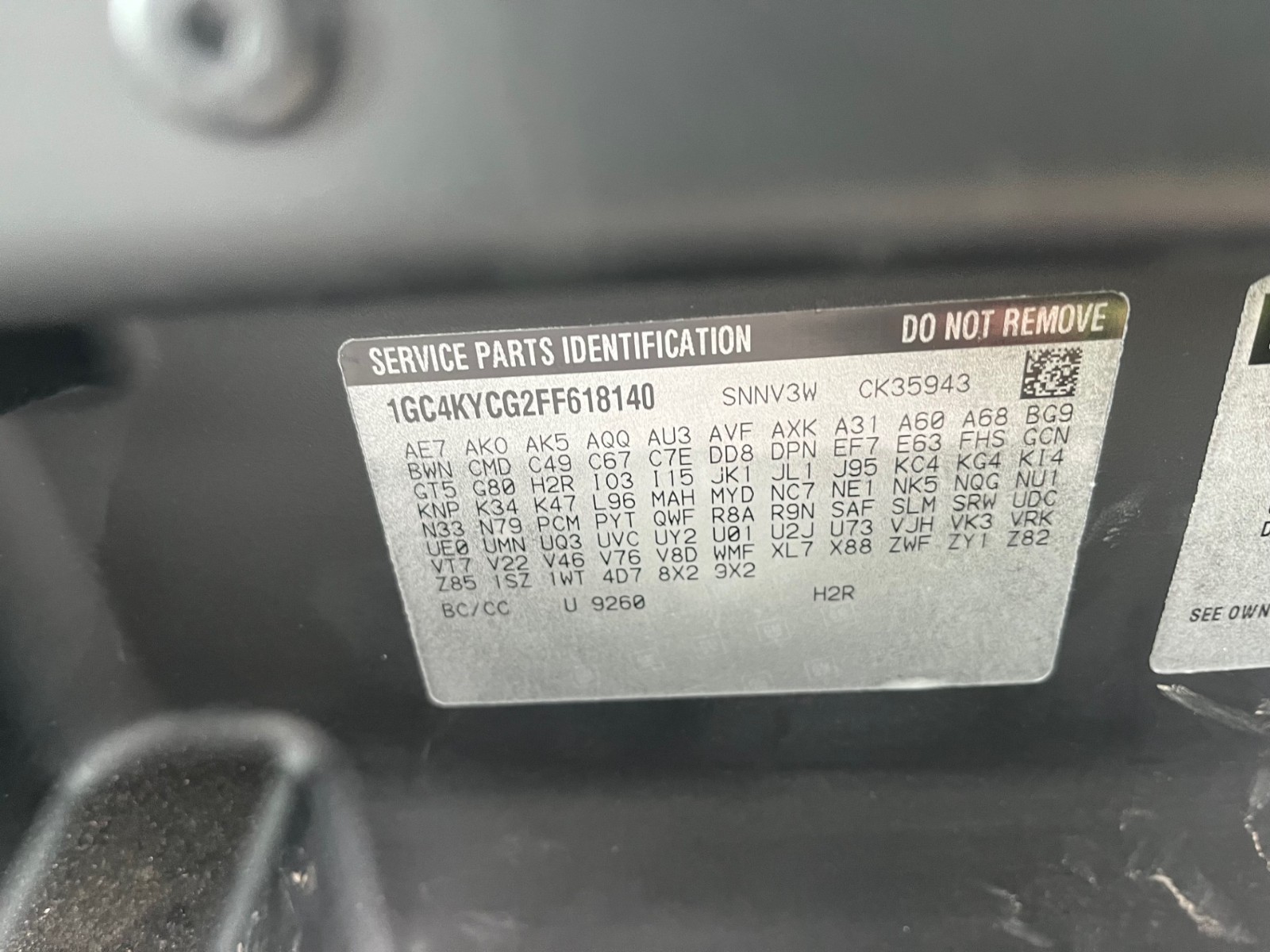 VIN:1GC4KYCG2FF618140