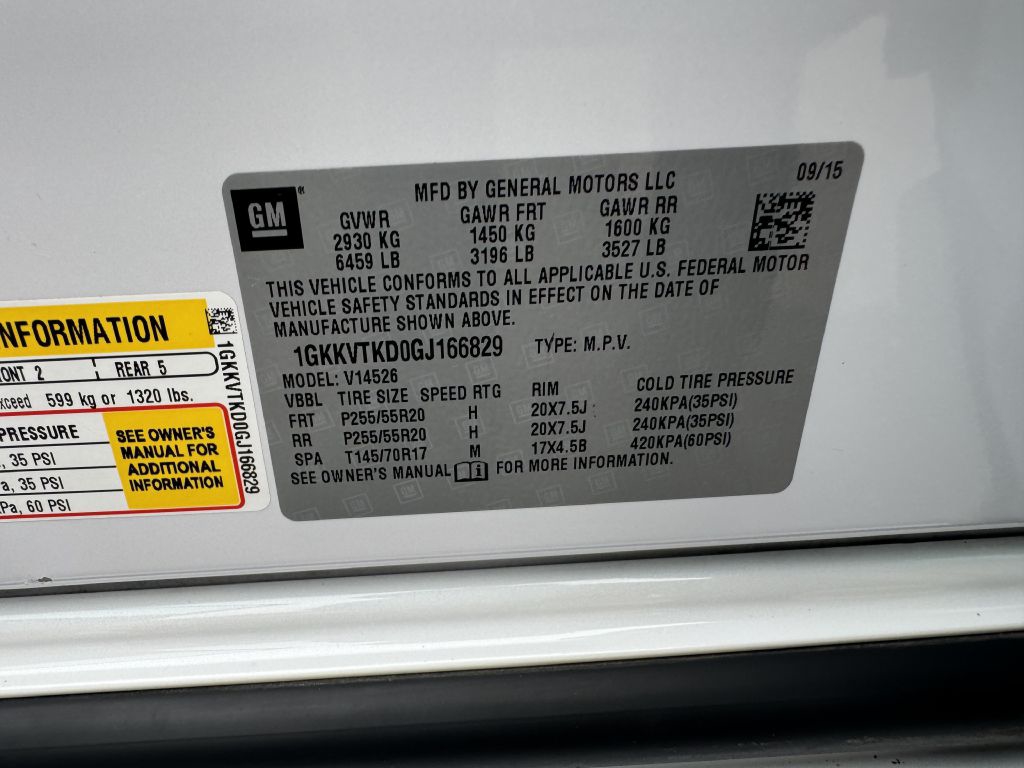 - VIN Number: 1GKKVTKD0GJ166829