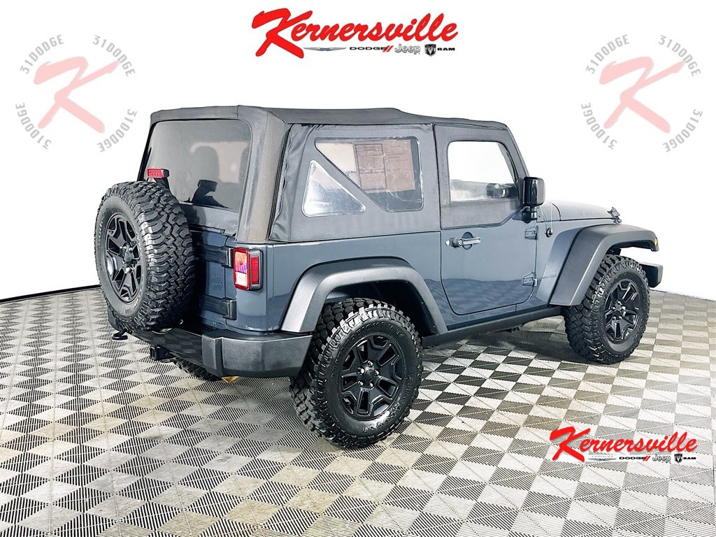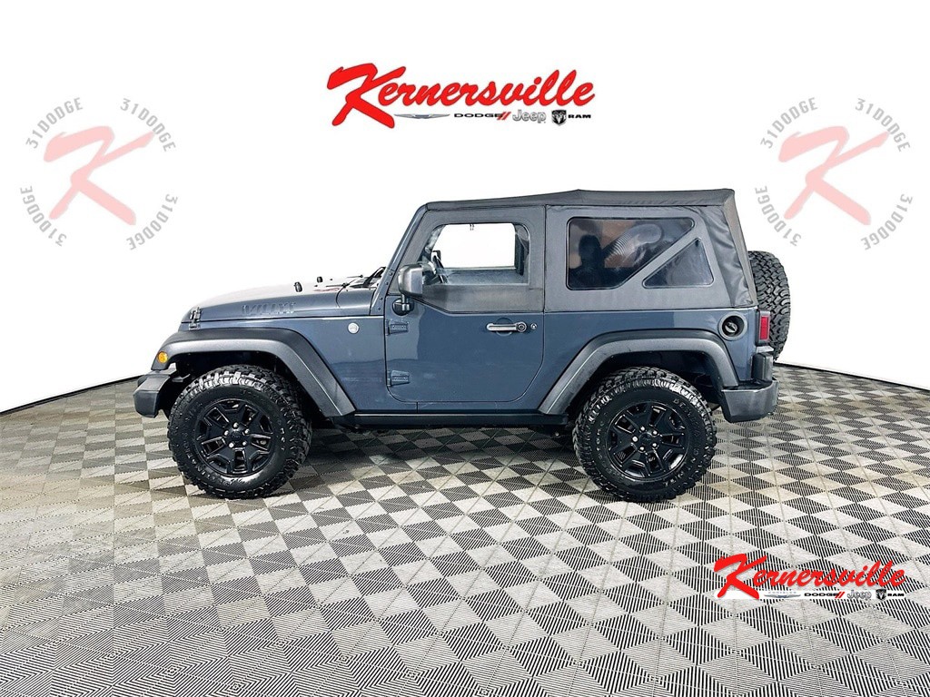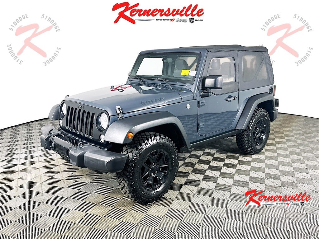 When calling or emailing, please reference stock number Y0419.MORE ABOUT THIS 2018 Jeep Wrangler JK Willys Wheeler SUV Clean Carfax Only! Willys Wheeler 4X4! 3.6L V6 24-Valve VVT Engine! 5-Speed Automatic Transmission! Command-Trac Shift-On-The-Fly Part-Time 4WD! Performance Suspension! Trac-Lok Rear Differential! 3.73 Axle Ratio! Rock Rails! Trailer Tow Group! Class II Receiver Hitch! Uconnect Voice Command With Bluetooth! Electronic Vehicle Information Center! Alpine Premium 9-Speaker Audio System With All-Weather Subwoofer! Air Conditioning! Leather-Wrapped Steering Wheel! Deep Tint Sunscreen Windows! All-Weather Slush Mats! This 2018 Jeep Wrangler JK Willys Wheeler 4X4 blends classic Jeep capability with upgraded off-road performance and iconic Willys styling. Powered by a proven 3.6L V6 24-valve VVT engine paired with a 5-speed automatic transmission, it features Command-Trac shift-on-the-fly part-time 4WD, a 3.73 front and rear axle ratio, performance suspension, Trac-Lok rear differential, Dana 44 heavy-duty rear axle, Dana 30 solid front axle, and rock rails for enhanced trail confidence. Equipped with the Trailer Tow Group including a Class II receiver hitch and 4-pin wiring, it is ready for adventure. Interior technology includes Uconnect voice command with Bluetooth, an electronic vehicle information center, Alpine premium 9-speaker audio system with all-weather subwoofer, leather-wrapped steering wheel, air conditioning, steering wheel mounted audio controls, and deep tint sunscreen windows. Additional features include hill descent control, hill start assist, electronic stability control, traction control, 4-wheel disc brakes, and rugged Willys exterior accents with high gloss black wheels and off-road tires. This Wrangler delivers authentic Jeep capability with upgraded style and functional equipment designed for both daily driving and weekend exploration. Kernersville Chrysler Dodge Jeep Ram is the LARGEST truck dealer in the Southeast for two years in a row. We have the largest selection of trucks and over 1900 vehicles in stock at all times. We aim to truly be the lowest priced in the market and we do so by price checking our inventory every day and dropping our price to remain in the TOP 3 LOWEST PRICED. Shop at the most convenient dealer in the USA, available online! Shop at Kernersville Chrysler Dodge Jeep Ram! Hablamos Espanol - llame hoy.