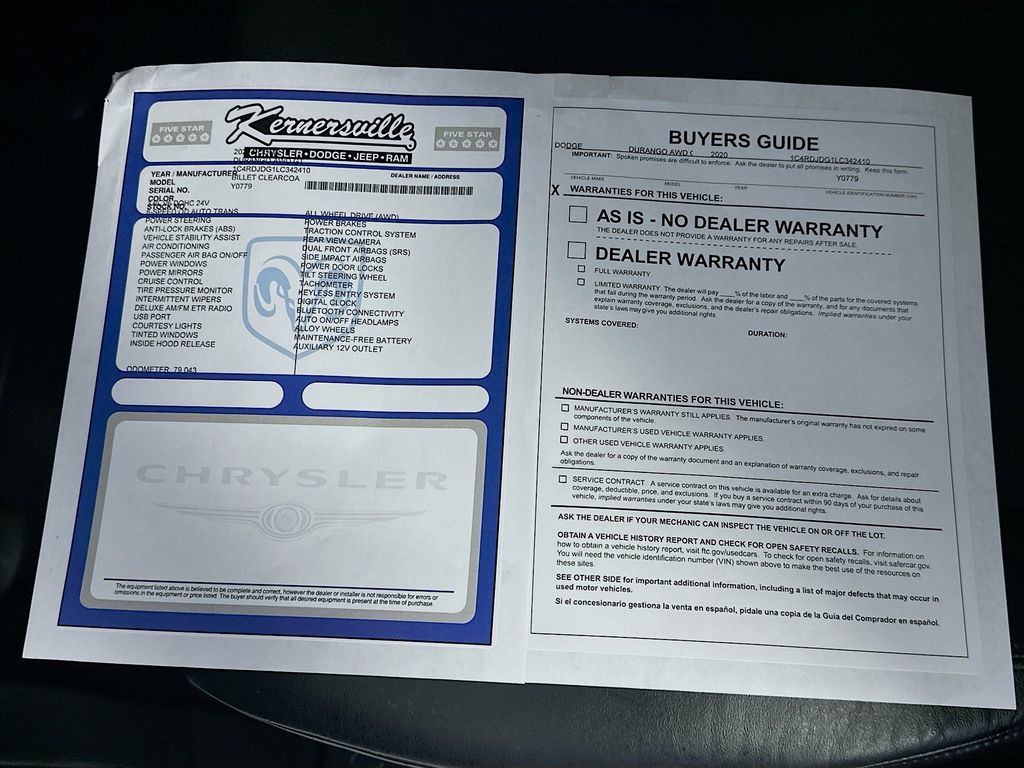 When calling or emailing, please reference stock number Y0779.MORE ABOUT THIS 2020 Dodge Durango GT Plus SUV Clean Carfax! All Wheel Drive! 3.6L V6 Engine! 8 Speed Automatic Transmission! GT Plus Trim! Heated Seats! Heated Steering Wheel! Remote Start! Apple CarPlay! Android Auto! This 2020 Dodge Durango GT Plus AWD delivers strong V6 performance, three row versatility, and advanced comfort features, making it an excellent choice for drivers who want a capable and family ready SUV. Powered by a 3.6L V6 24 valve VVT engine paired with an 8 speed automatic transmission and all wheel drive, this Durango provides smooth acceleration, confident handling, and dependable performance in a variety of driving conditions. Built with safety and stability in mind, it features electronic stability control, traction control, anti lock braking system, rain brake support, ParkView rear backup camera, and ParkSense rear park assist with stop for enhanced driver confidence. Inside, the cabin offers a premium and spacious environment with leather suede bucket seating, heated front seats, heated second row seating, a heated steering wheel, and a three zone automatic climate control system for maximum comfort. The interior is designed for versatility with 60/40 split folding second row seating, a third row seat, and flexible cargo space to accommodate passengers and gear with ease. Technology highlights include the Uconnect 4 system with a 7 inch touchscreen display, Apple CarPlay, Android Auto, Bluetooth connectivity, SiriusXM capability, and steering wheel mounted audio controls for seamless access to media and vehicle functions. Additional features include remote start system, push button start, power liftgate, universal garage door opener, memory driver seat and mirrors, and multiple USB charging ports for convenience. Exterior features include 20 inch satin carbon aluminum wheels, LED daytime running lamps, premium fog lamps, automatic headlamps, heated power mirrors, and bold Durango styling finished in Billet Clear Coat. This Dodge Durango GT Plus combines performance, comfort, and practicality, making it a reliable SUV ready for any lifestyle. Kernersville Chrysler Dodge Jeep Ram is the LARGEST truck dealer in the Southeast for two years in a row. We have the largest selection of trucks and over 1900 vehicles in stock at all times. We aim to truly be the lowest priced in the market and we do so by price checking our inventory every day and dropping our price to remain in the TOP 3 LOWEST PRICED. Shop at the most convenient dealer in the USA, available online! Shop at Kernersville Chrysler Dodge Jeep Ram! Hablamos Espanol - llame hoy.