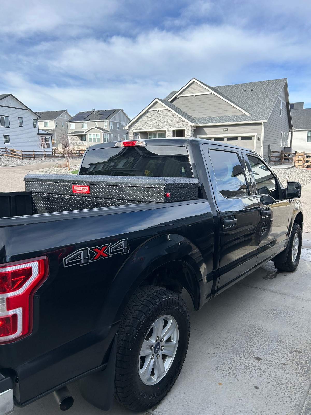 The 2020 Ford F-150 SUPERCREW is a black crew cab pickup truck with a gray interior. It features a 3.5 L gasoline engine, automatic transmission, and 4WD drive type. It has 4 brand new open range tires with less than 100 miles on them. Comes with Weather Guard tool box and weather tech floor mats front and bag. To many new maintenance upgrades to count. This passenger vehicle has 6 seats and 4 doors, equipped with various features such as power windows, navigation system, cruise control, and air conditioning. With electronic stability control, tow bar, and safety features like ESP and anti-lock brakes, this Ford F-150 offers a comfortable and secure driving experience. Made in the United States, this 2020 model has had only one previous owner and has a mileage of 153680.