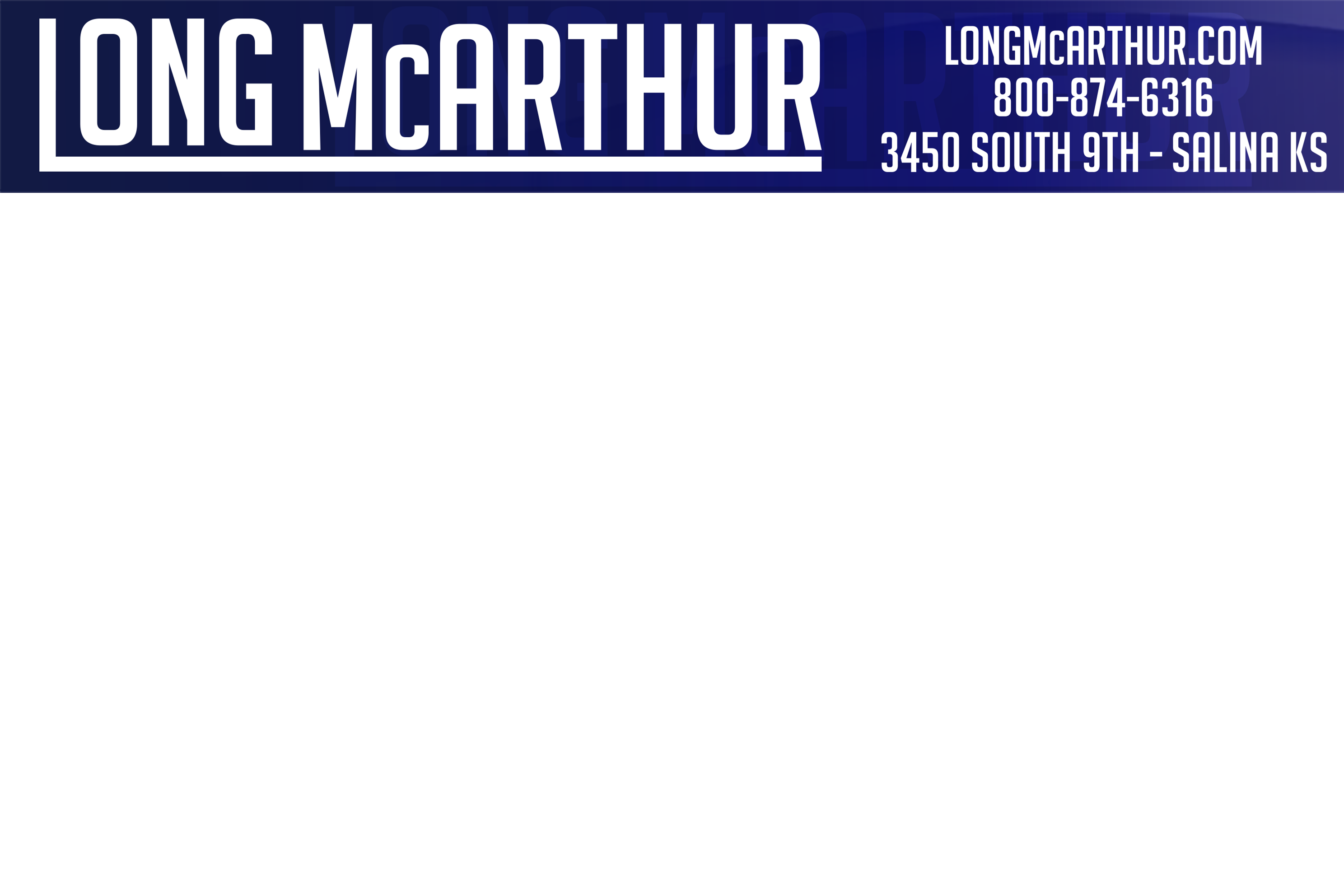 Our Prices: Prices are based on rebates for Zip Code 67401. We advertise ONE price, and although we are open to offers we encourage a transparent conversation prior to any negations. Prices are subject to change without notice. New & PreOwned vehicle pricing includes a $1,000 discount for financing through a lender arranged by Long McArthur. Arranging your own financing, or paying cash, forfeits the $1,000 discount included in the sales price on any New or Preowned vehicle purchase.