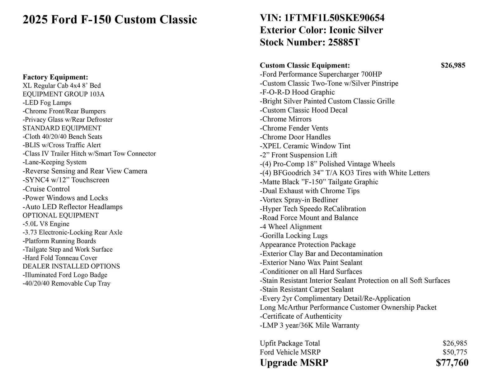 2025 Ford F-150 Lifted Classic SC V8 700HP 4x4 MSRP $77760