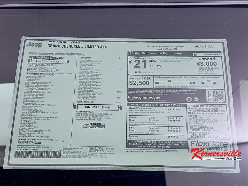 When calling or emailing, please reference stock number 251898.On new vehicles we offer free shipping up to 250 miles and competitive rates on shipping outside that range with our professional in-house shippers! Request a shipping quote. Alternatively, we also offer a $500 credit good towards your preferred shipper or towards one airfare ticket to our dealership so you can pick up your vehicle in person and drive it home! Read more on this below.We stock over 1500 vehicles in inventory and can find the right vehicle at the right price for you! Our in-house shippers offer highly competitive shipping rates to all four corners of the US.MORE ABOUT THIS 2025 Jeep Grand Cherokee L Limited SUVLEATHER HEATED SEATS! SUNROOF! NAVIGATION! REMOTE START! BACKUP CAMERA!