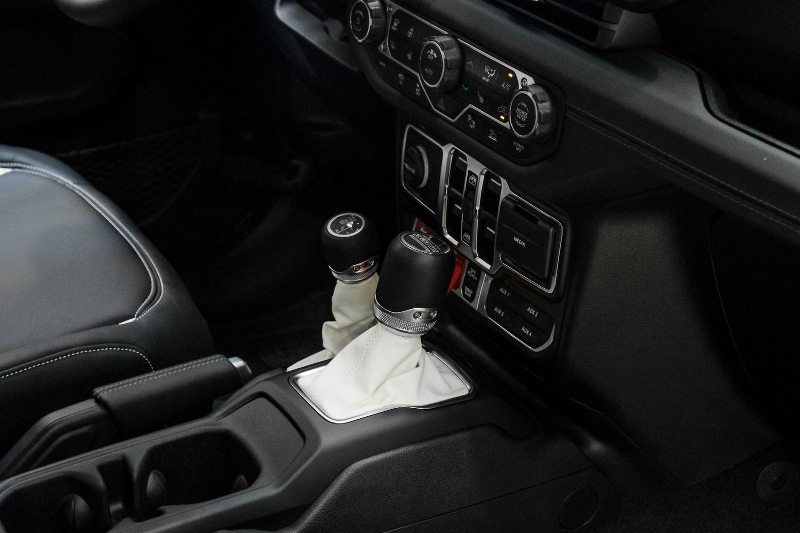 - Parking brake trim: leather