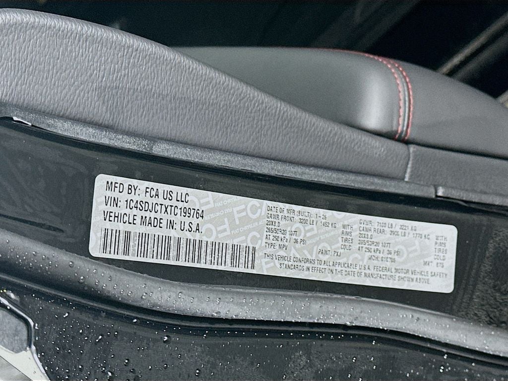 MORE ABOUT THIS 2026 Dodge Durango GT Blacktop SUV LEATHER HEATED SEATS! SUNROOF! NAVIGATION! REMOTE START! BACKUP CAMERA! This 2026 DODGE DURANGO GT BLACKTOP AWD HEMI V8 SUV includes the following features: Package: 22T , Exterior Color: Diamond Black Clear Coat Exterior Paint , Interior Color: Black Leather Trimmed Bucket Seats , Engine: 5.7L V8 HEMI MDS VVT Engine , Transmission: 8 Speed Automatic Transmission , ParkView Rear Back Up Camera , ParkSense Front and Rear Park Assist , Sport Mode , Power Liftgate , Remote Start System , Heated Front Seats , Heated Steering Wheel , Uconnect 5 Nav with 10.1 Inch Touch Screen Display , Apple CarPlay , Google Android Auto , 4G LTE Wi Fi Hot Spot , Connected Travel and Traffic Services , Wireless Charging Pad , As well as the following options: Ventilated Front Seats , Power Sunroof , Heated Second Row Seats , Full Speed Forward Collision Warning Plus , Black Roof Rails , Integrated Roof Rail Crossbars , Adaptive Cruise Control with Stop , and much more! Please check the window sticker for a complete list of equipment. Kernersville Chrysler Dodge Jeep Ram in Kernersville, NC is located in the heart of North Carolina between Charlotte, NC and Raleigh, NC. We specialize in NO hassle out of state purchases we process your taxes, tags and title work for the city and state where the vehicle will be registered. RETURN TO TOP